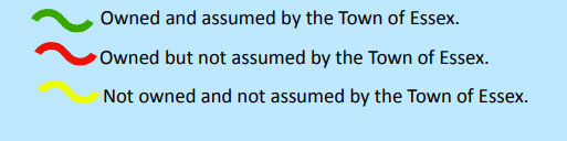 Currently there are over forty beach roads not assumed by the town, seventeen of which are owned but not assumed, and the remaining are not owned and not assumed (essentially private). Most of the roads in which the Town owns but does not assume were registered to the Town under an old plan of subdivision. Again, these roads have not been assumed and therefore not maintained by the Town. There is a variety of ownership patterns for those roads not assumed and not owned by the Town.