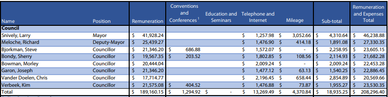 During the 2021 Calendar year, Councillor Vander Doelen was docked 2 months pay and Councillor Bondy was docked 1 months pay. Both came as a result of a report by Robert Swayze the Integrity Commissioner for Essex.