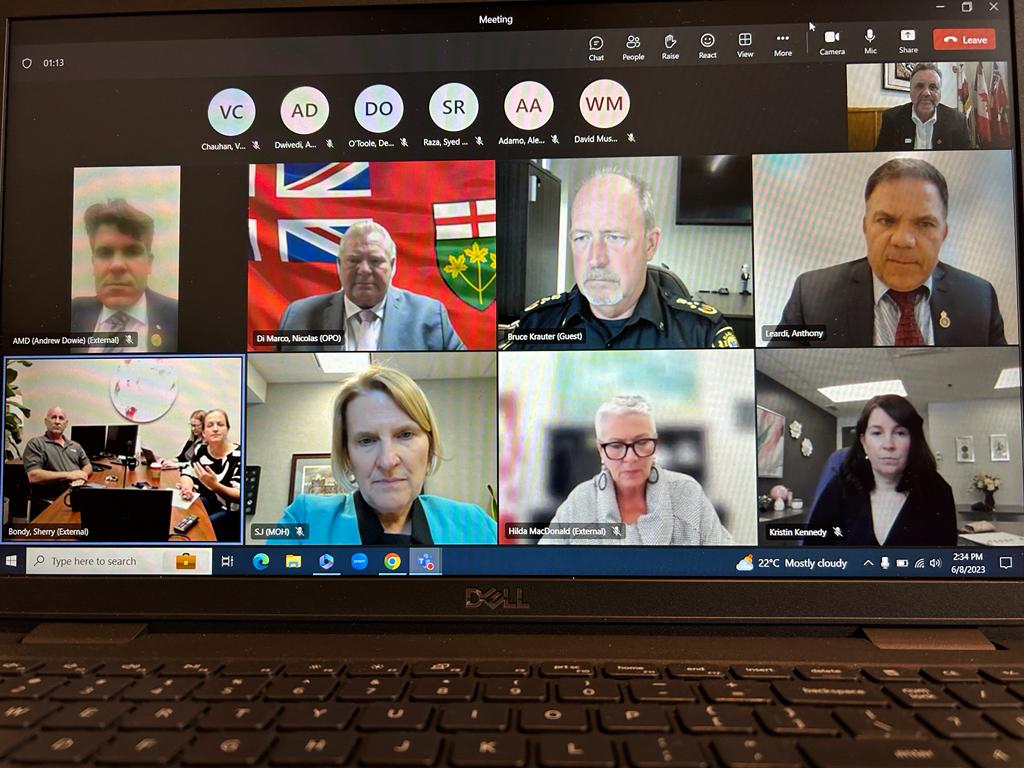 On June 1st I reached out to Premier Ford and asked him if we can discuss local health care concerns with offload delays resulting in Code Red and Code Black with our EMS. He was very accommodating and his staff quickly worked to organize a meeting. In attendance were the Premier, the Deputy Premier Silva Jones who is also the Minister of Health, Warden Hilda MacDonald, Deputy Warden Joe Bachetti, Essex Deputy Mayor Robbie Shepley, David Musyj, Bruce Krauter, Kristin Kennedy, Andrew Dowie, Anthony Leardi along with myself.