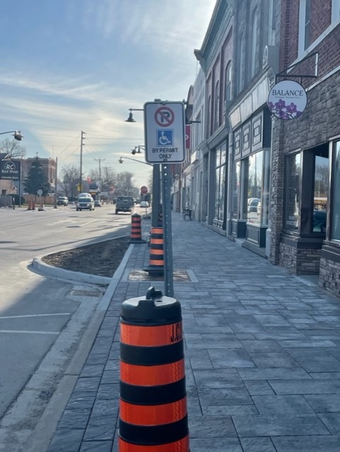 Once the Harrow Streetscape was finished, the first step was to get the handicap parking spot BACK… but there is still no curb cut!