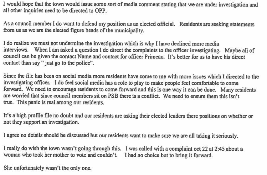 Email to OPP, Asking for Official Investigation: Oct 30th