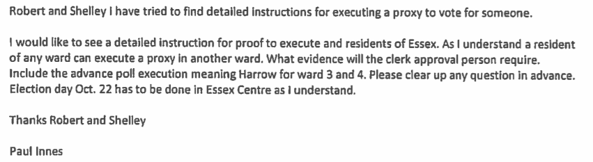 Requesting More Details on How to Execute a Proxy from Candidate Innes: Sept 10th Before the Election. Note the Staff Explanation on the Bottom.